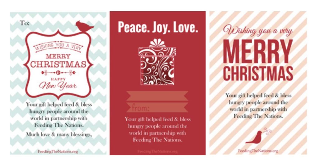 Still looking for a last-minute gift? Give the gift of Hope this Christmas. When you partner with Feeding The Nations, you are giving food to families affected by war, famine, natural disasters and extreme poverty. You are sharing the love of Jesus and the Hope of the Good News. What better gift could be given?